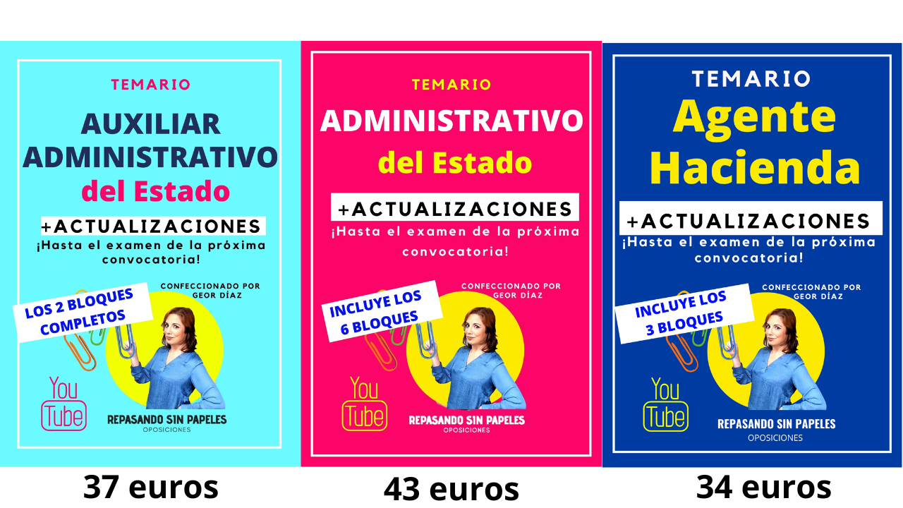 En esta sección también encontrarás temarios de oposiciones: el temario de auxiliar administrativo del estado, el temario de administrativo del estado, el temario de agente de hacienda, y el temario de guardia civil.